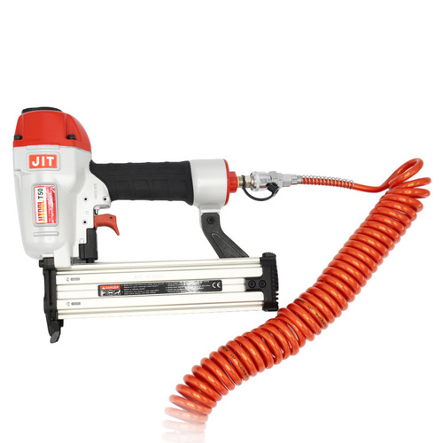 میخکوب بادی، ابزار بادی است که امروزه جایگزین چکش شده و جزو پرکاربردترین ابزارها در مشاغل نجاری، مبلمان سازی، کابینت سازی و دیگر حرفههای مشابه به شمار می رود. از میخکوب برای کوبیدن میخ در قطعات چوبی و مواد دیگر استفاده می شود. بهطور کلی، تنوع ابزارهای بادی یا پنوماتیک (Pneumatics) که به ابزارهای خط مونتاژ و خط تولید نیز معروفاند، محبوبیت آنها را رو به افزایش قرار داده است. میخکوب بادی نسبت به میخکوب برقی و میخکوب شارژی دوام بیشتر و استهلاک کمتری دارد. البته باید در نظر داشت که استفاده از ابزارهای بادی، کمی دست و پا گیر است و محدودیت جابجایی دارد زیرا لازم است که به صورت مداوم به کمپرسور هوا و شلنگ متصل باقی بمانند. میخکوب بادی جیت مدل T50، با طراحی منحصر به فرد و زیبا، برای میخ کوبی با کیفیت و مستحکم طراحی و ساخته شده است. تغذیه ی خشاب میخکوب جیت T50 با ظرفیت 100 عدد میخ تی پو 16GA با حداکثر ارتفاع 50 میلی متر است.نام دیگر میخ تی پو، میخ گیج 16 است و به شکل شانه ای عرضه می شود.میخکوب بادی جیت دارای بدنه ی ارگونومیک، خوشدست و ضد خستگی است. در دسته ی آن هم، از روکش نرم برای جلوگیری از تعریق دست استفاده شده است. خشاب کشویی سخت کاری شده ی میخکوب بادی جیت مدل T50 ازجنس آلومینیوم است.موارد استفاده ی میخکوب بادی تیپو زن جیت T50 در دکوراسیون، صنعت مبلمان، ساخت درب و پنجره، کلیهی امور نصب، ساخت و نصب انواع قاب، اتصال شیشه به مصنوعات چوب و ... است.